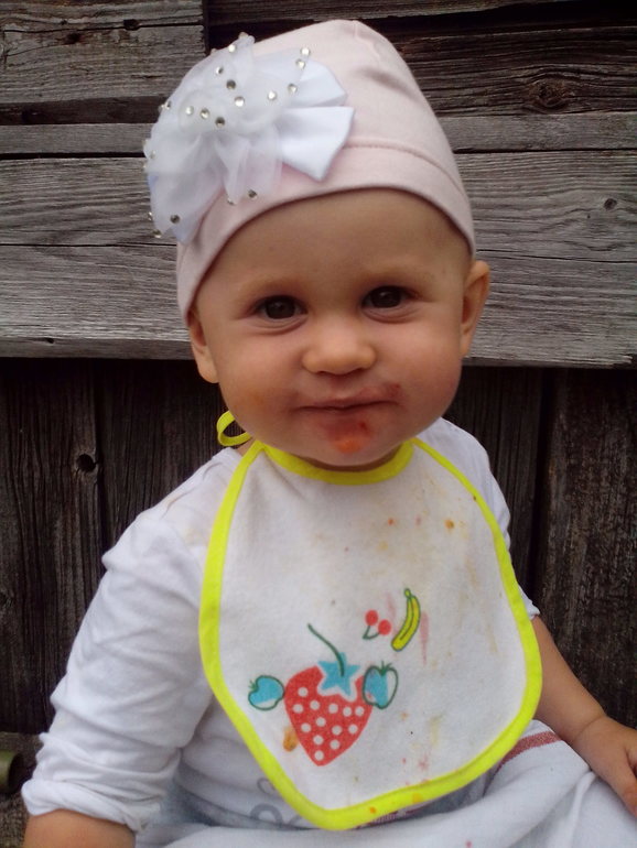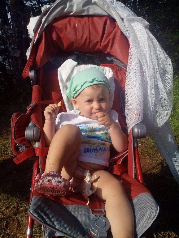 В поездках мы даже пропустили 1г 3 мес)))) Я всем говорю 2 мес, а потом посмотрела на календарь ...... а ей уже и 3 месяца. За последний месяц наша Полька подросла, стала очень своенравной и капризной. Чуть что не так, сразу в рев((( и таскай на руках до посинения, т.к она встает рядом, руки вверх поднимает и орет , сильно и очень громко. Но только на руки взял, рев тут же прекращается)))) Так что бедный наш папа)))))