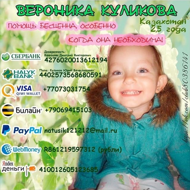 ➡ Куликова Вероника, 2,5 года,ДЦП ➡ Итого собрано 379 144р. ➡ Осталось собрать 820 855,06р. ➡ Сбор проверен Поможем Всем Миром