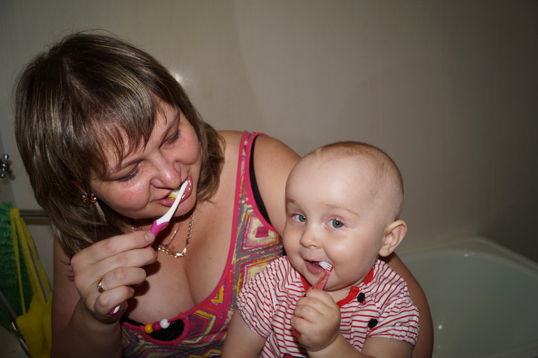 Сходим на неделе, пусть врач глянет, крику правда будет (((я читала, что нельзя маленьким деткам зубные пасты фторосодержащие, сплевывать не умеют еще, а глотать не желательно. Вот пока просто водой чистим, конечно не тот эффект, но пока хоть так