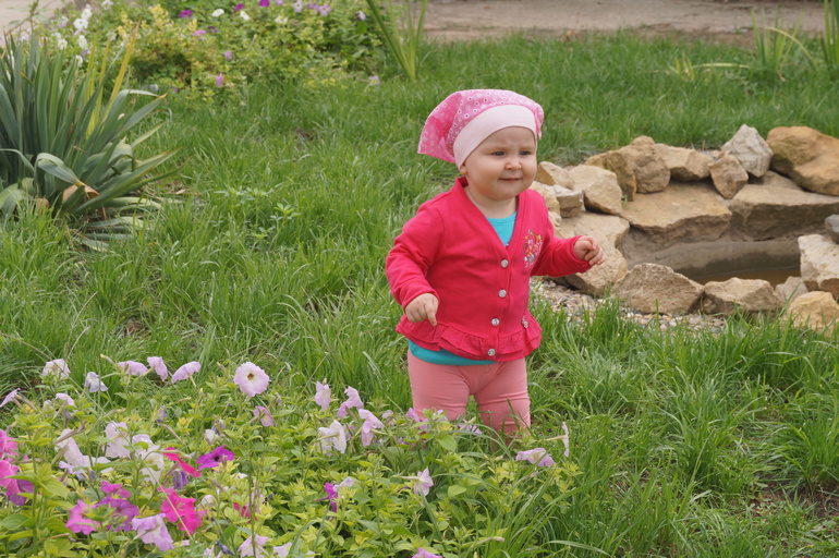 На прогулках Алиска не хочет сама ходить(((немного пройдет и просится на руки или обтирает коляску...может за ручку походить...а дома же носится как торпеда...не знаю с чем связано...деток любит,сама вступает в контакт... жду с нетерпением когда все изменится..