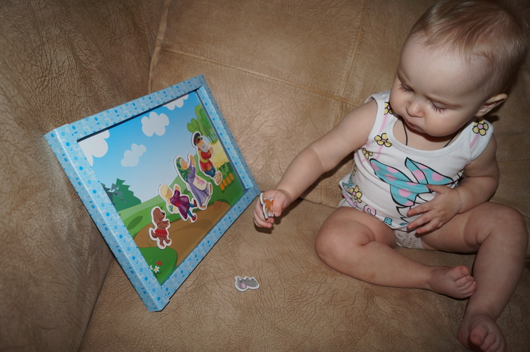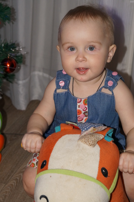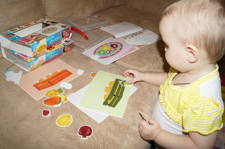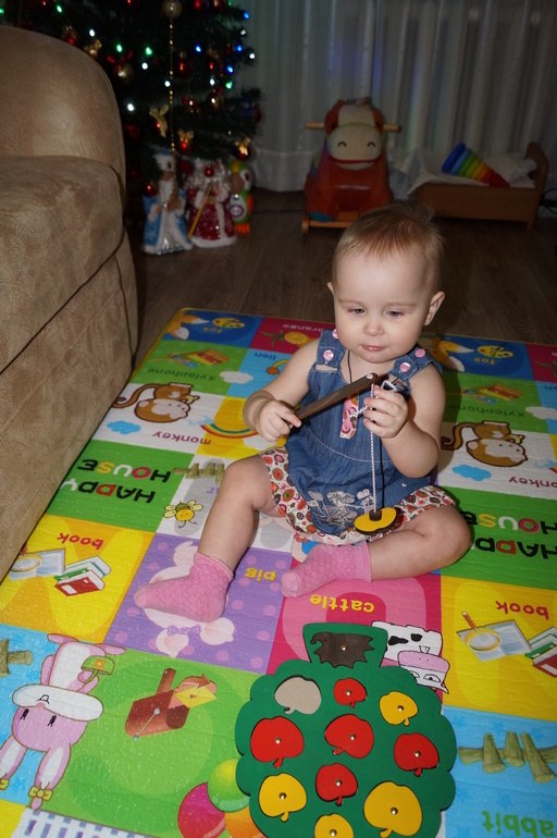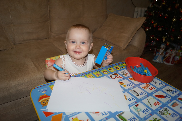 Алиска молодец,растёт,развивается!Активная девочка и очень сообразительная.Иногда удивляет так,думаешь вроде малая еще ,а все понимает. Очень часто с ней играем в настольные,познавательные игры.Уже может находить одинаковые картинки, знает (показывает) многих животных, некоторые овощи и фрукты.Когда я считаю 1,2...,то она начинает загибать пальчики на своей ручке))