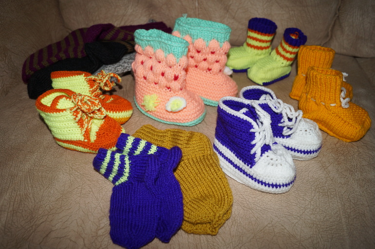 Наши с мужем родители живут очень далеко от нас, вернее мы от них((мы ж уехали....Поэтому все подарки к праздникам мы получаем в посылках))В очередной раз моя мама стала собирать посылку к новому году, и я попросила ее связать для Алисы носочки теплые.Сказано- сделано.И вот сегодня мы забрали нашу посылку от бабушки с дедушкой(еле дотащила 11 кг,наверное продавались бы на почте коробки большего размера,она бы взяла самую огромную)))) ) помимо всего изобилия подарков, мама нас снабдила носками по полной))не только Алисе,но и нам с мужем достались носочки))