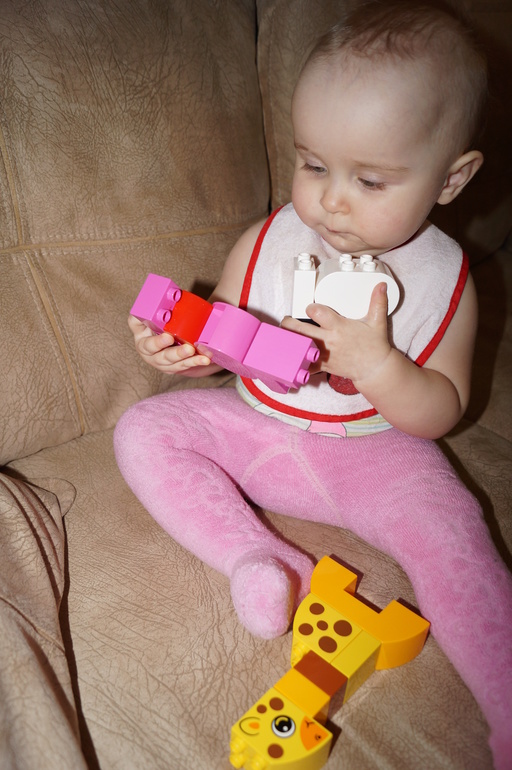 Алисе пока понравилось только облизывать, обнимать и укачивать собранные фигурки)))