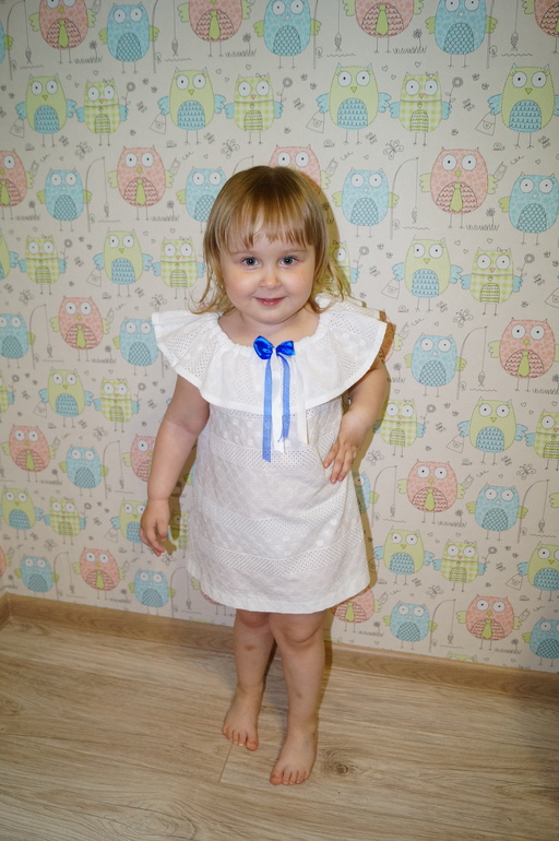 Отрез хлопкового шитья 2 года лежал и ждал своего часа. Покупался для крестильного платья,но потом передумала и сшила из другой ткани. И вот вчера вспомнила про этот отрез и решила сшить дочери летнее платье.