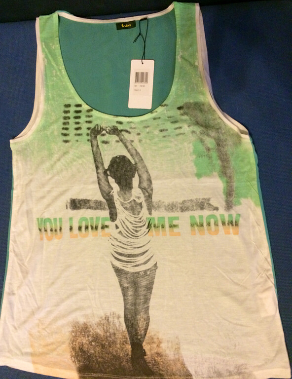 Очень классная майка. Размер 46-48. 200руб. Отлично на жару. Это вид сзади. Цвет не удался, он мятный на самом деле