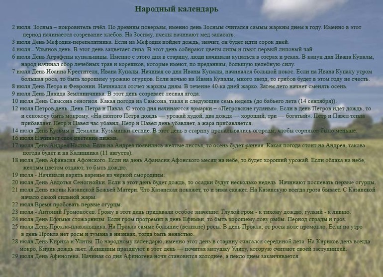 8. Заполняем календарь наблюдений.Делаем заметки в календаре (Праздники, приметы и т.д.). Погода на Мефодия, Самсона, Казанскую.