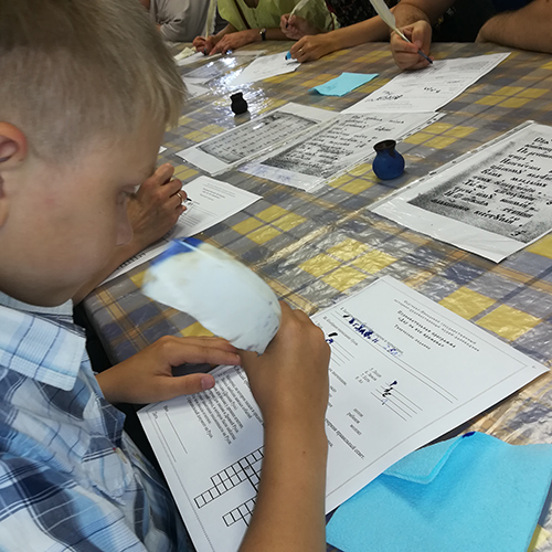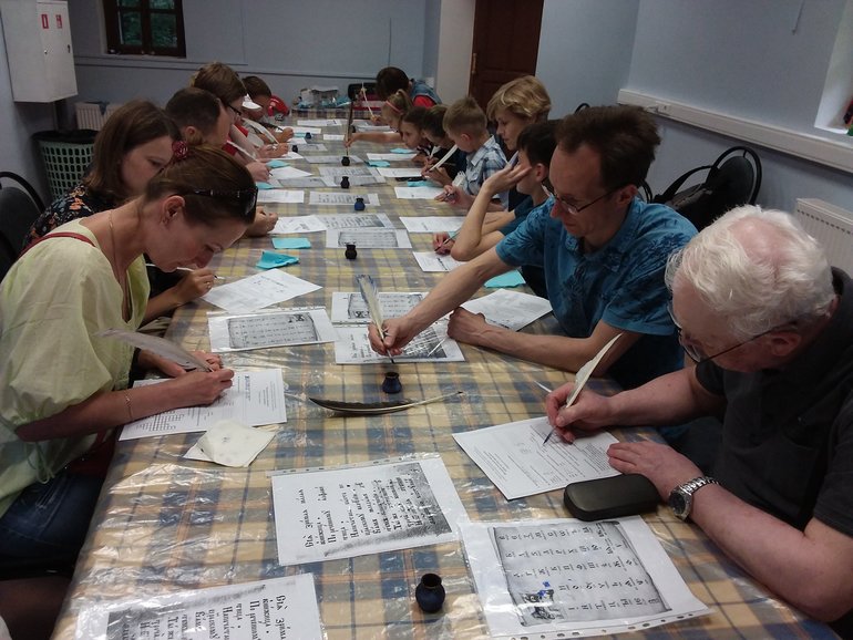 Мы писали гусиными перьями и учили старославянский алфавит, пробовали читать на старославянском и выполняли несколько заданий.