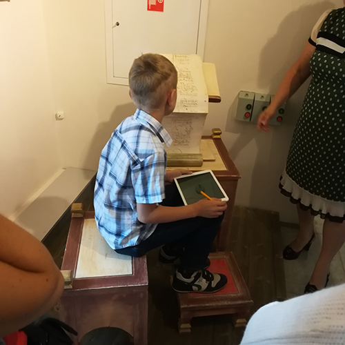 После экскурсии экскурсии мы попробовали себя в роли учеников церковно-приходских школ. Узнали почему одноклассников называли в старину однокашниками (Это их в школе пшенной кошей одной кормили!).