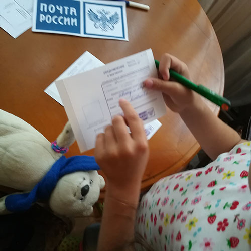 8.Получаем задание на внимание. Из четырех извещений нужно выбрать нужное. (В одном - посылка, в другом - неверный адрес, и т.д.)