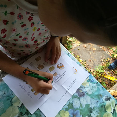 5. В шатре отгадываем почтовый кроссворд. В выделенных буквах следующая подсказка (батут).
