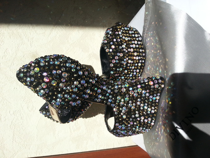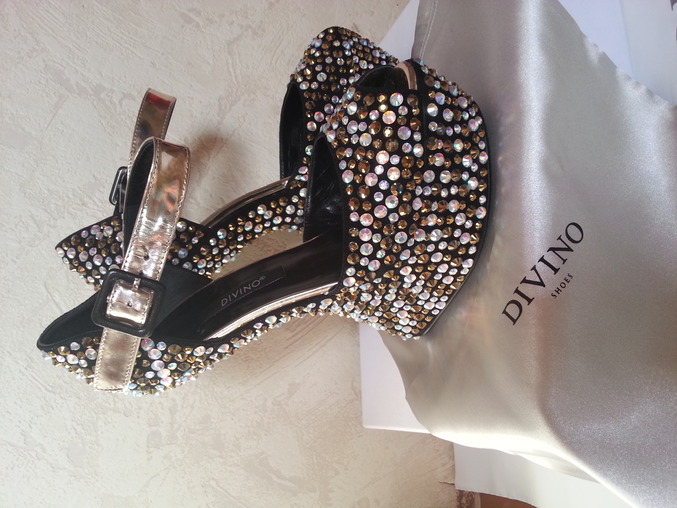 Продам новые туфли все в камнях фирмы Divino 39 размер. Высота платформы 6 см, общая высота каблука 17 см.