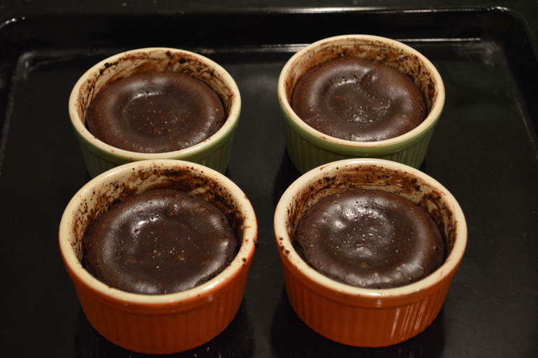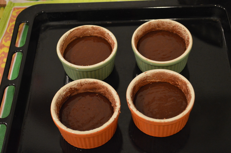 8. Время выпекания - примерно 10 минут. Фонданы готовы, когда сверху застынут практически полностью, но в середине должен остаться не пропеченный кружочек.