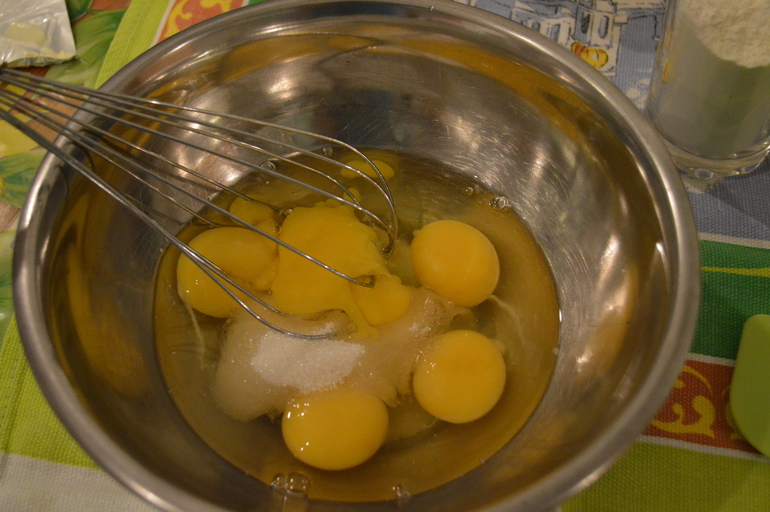 4. Смешиваем в отдельной емкости яйца и сахар. Яйца обязательно предварительно нужно помыть, желательно с содой.