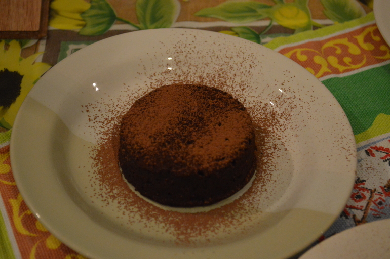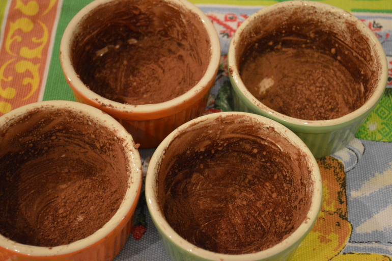 10. Посыпаем готовый фондан какао с помощью ситечка. И сразу же на стол! Серединка фондана должна получиться жидкой. Но на фото, к сожалению это не особо видно.