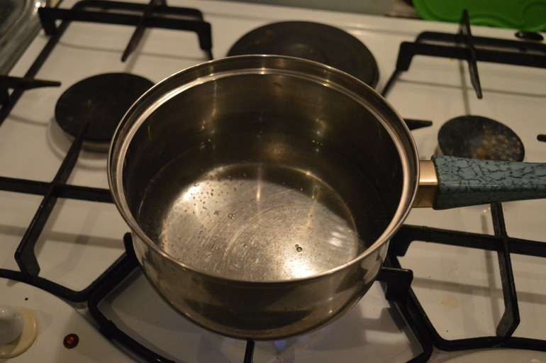2. Готовим паровую баню - ставим кастрюльку или сотейник с небольшим количеством воды на плиту на средний огонь
