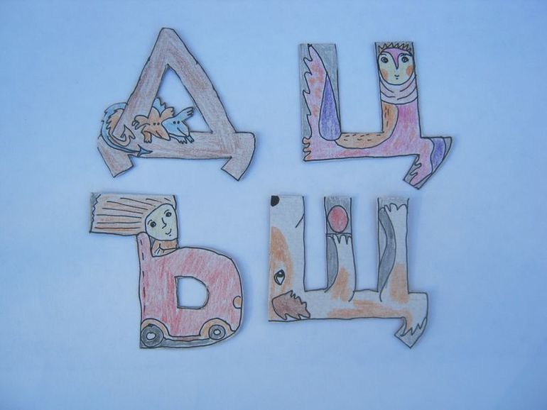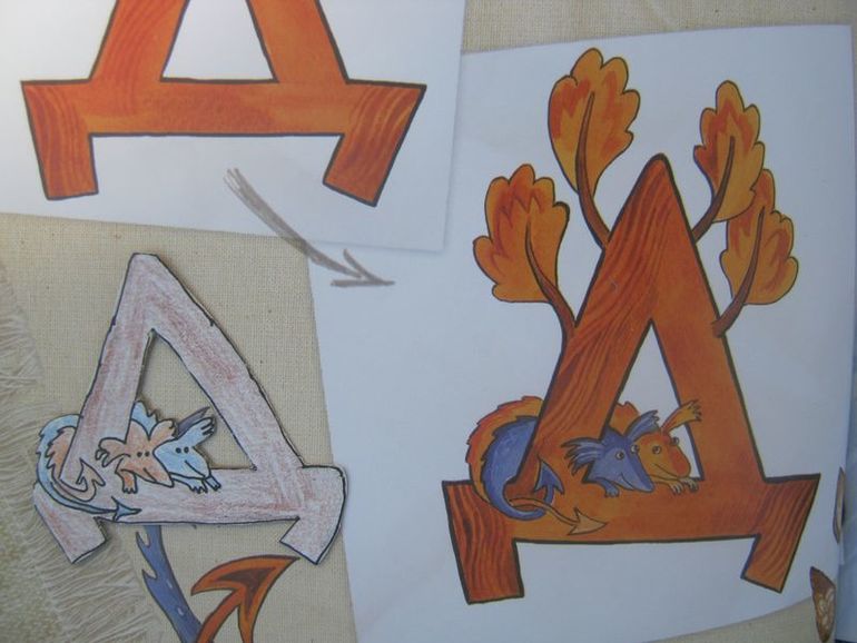 Совершенно внезапно мне в голову пришла идея: А не нарисовать ли мне буквы из Азбуки превращений? И я сразу же принялась за работу, вооружившись карандашами, картоном и гелиевой ручкой. Результат превзошел все мои ожидания, я очень довольна как все получилось. Ничего не чертила линейкой, просто срисовывала как получается.