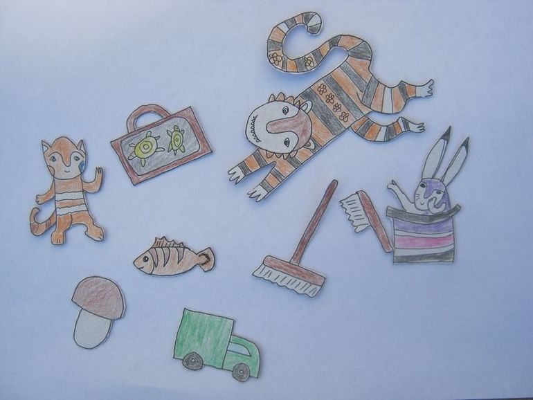 Пришлось и их нарисовать. Дочка просила, вот тумба (буква Т) есть, а тигра нет, а почему Человек без чемодана и т.д.