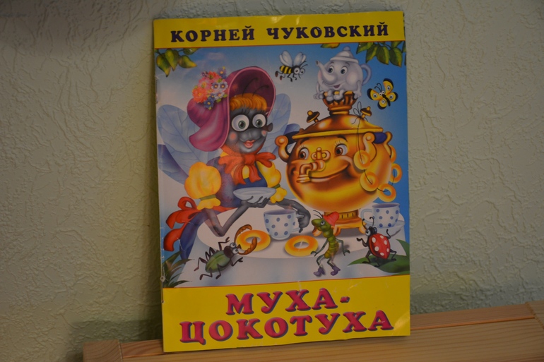 Первая наша книжка "Муха-Цокотуха". Очень люблю Чуковского, поэтому читала Соне, пока она еще не могла от меня убежать