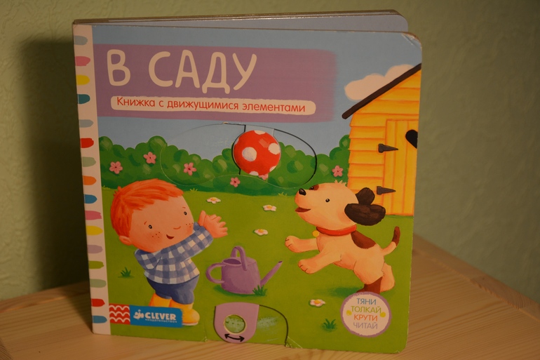 Еще одна книжка с движущимися элементами - "В саду" (в "Лабиринте" цена 481 руб.). Их целая серия, я выбрала самую, на мой взгляд, понятную для Сони.