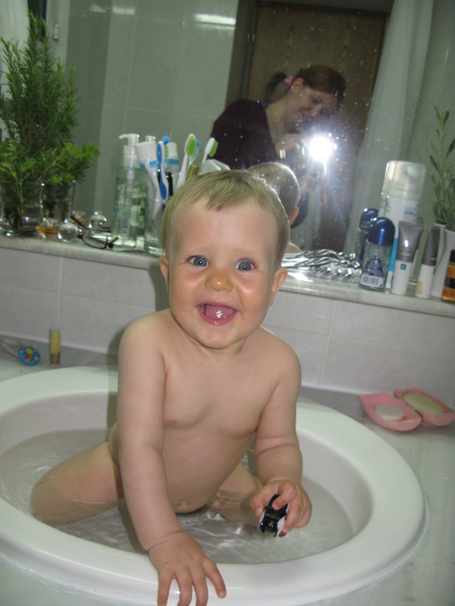 а вчера, 12 июня, Леночка впервые встала на ножки!))) может быть мы и запаздываем по этим параметрам немного, но все-таки она столько тяжело болела зимой, что претензий к ней не имею. Главное, что б росла здоровой и хорошей девочкой, такой, как сейчас!)