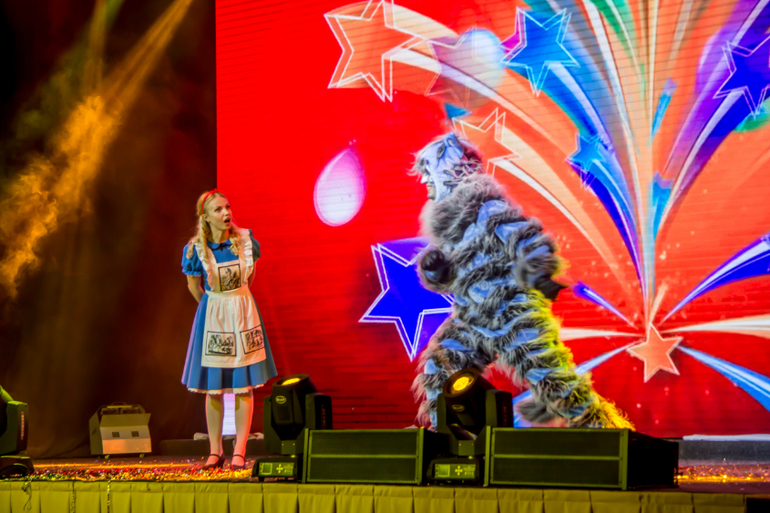 Дописано 6.06.2017 (7 месяцев спустя): Детки до сих пор пребывают под впечатлением "Алисы". Особенно Денис. Он все время вспоминает черную королеву на ходулях, акробатов-прыгунов и пушки. Удивительно, как ему запал в душу этот спектакль.