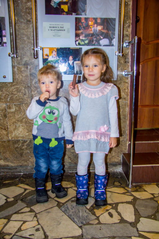 В этот раз Дениске было тяжело просидеть весь спектакль. Лиза хоть и слушала, но тоже всю меня истоптала: мы были в самом конце зала, и она стояла на мне, чтобы хорошо видеть. В целом спектаклем я довольна, хотя вот наша бабушка "плевалась": мол, и декораций толком не сделали, костюмы однотипные, мол, не для детей какой-то спектакль...