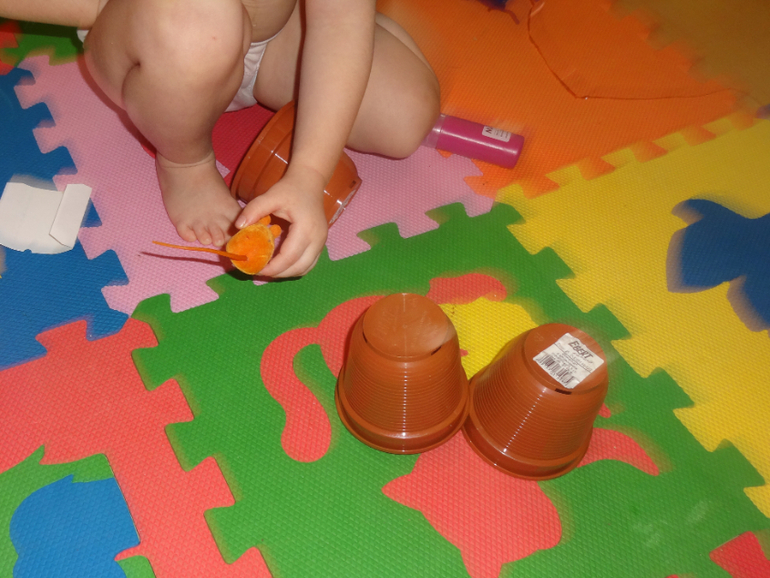 Встретили кошку. Наперстки как-то Лиза не любит:( Я интуицию уже давно убрала из Шичида-занятий. Один раз все же Лиза сыграла в "угадай-ку", а потом протестовала против продолжения игры. Убедила ее поиграть в игру на внимательность: показываю, куда кладу мышку, потом вожу стаканчики достаточно быстро, надо следить глазами. Сыграли 2 раза: показывала правильно. Продолжать отказалась.