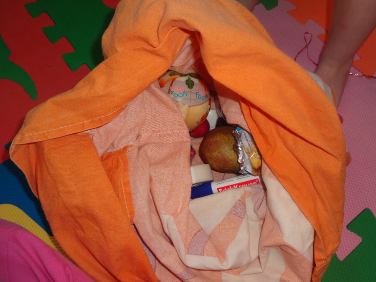 Ну, в эту игру Лизонька всегда жульничает и пытается подглядеть в мешок. Пару раз я все же убедила ее назвать мне предметы на ощупь, но чаще всего подглядывала. Термин "съедобное" известен, отдала собаке все съестное, причем успела попробовать все! (даже нечищеную морковку) за исключением редиски и апельсина.