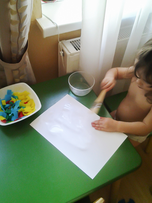 А затем стали располагать кусочки крепированной бумаги в произвольном порядке.