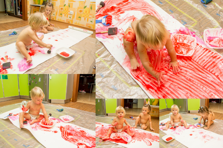 В один из наших дней масштабного рисования (молярования) стоило мне только отлучиться на секунду, как я застала Лизоньку за занятием боди-арта. Боди-арт на себе - это обычное дело, но в этот раз в качестве модели был выбран Дениска:)).