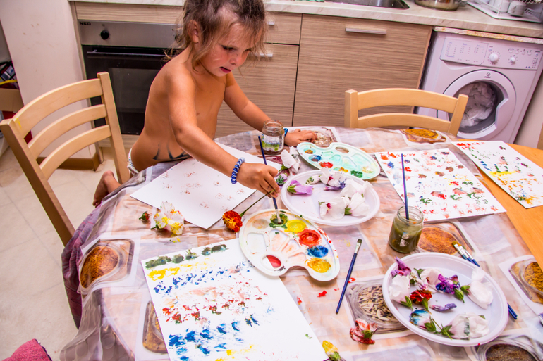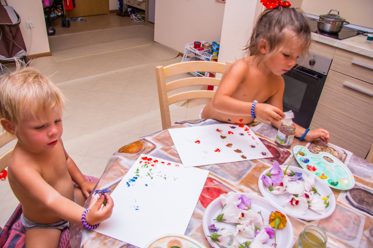 Изрисовав несколько листов, в ход пошли уже и просто рисования кисточкой и пальцами:)
