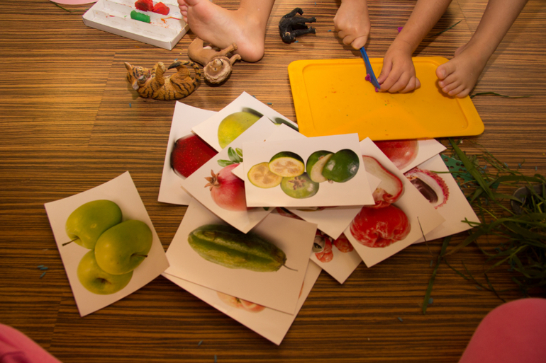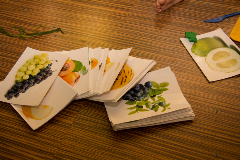 Так же я достала карточки "Шичида" с фруктами, посмотрели все.