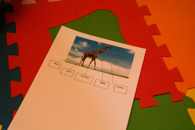 Справились с заданием чем отличаются эти животные. Вспомнили части тела на примере жирафа.