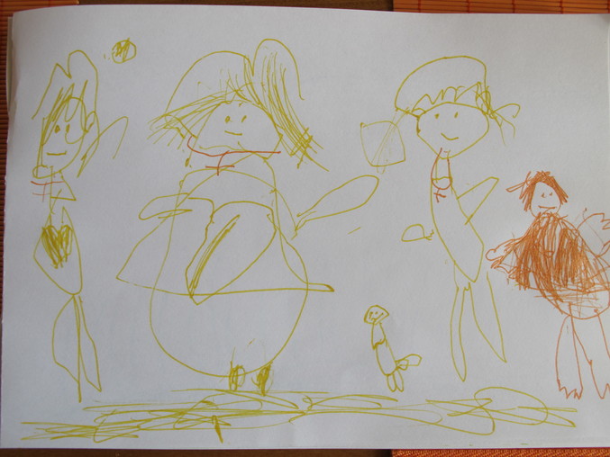 Ага))) Причем сам рисунок она нарисовала вчера, а кресты дорисовала сегодня им. Слышу, говорит: "Это им крестики, чтобы они в Боженьку верили, и Он их спас.")) Животные только без крестов. Она в последнее время часто на эту тему рисует, особенно Христа распятого.