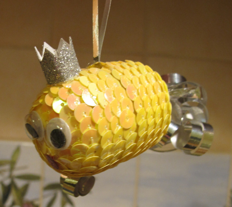 Рыбки - из коробочки от киндер-сюрприза. Рыбок повесим на елку, детям предложат выбрать себе рыбку. Внутри каждой рыбки листок с заданием и маленькая конфетка в награду))