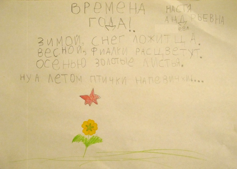 Про слоги она знает, про ритм попробую позже объяснить. Про рифму — мы играли с ней недавно, и, когда я спустя пару дней после сего творения сказала ей, что можно будет в следующий раз в рифму, как мы играли, она сказала: "Мам, это мое стихотворение.")) Ну твое, кто ж спорит, просто в следующий раз можно попробовать по-другому.А вообще мне пока нравится, что она отстаивает свое мнение. Наверное, через некоторое время я буду от этого стонать)