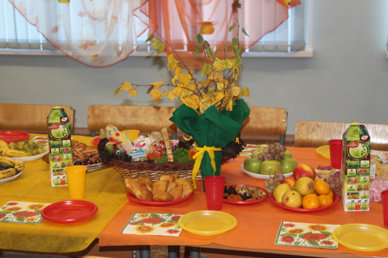 А это праздник осени, который мы пропустили. Мы только успели украсить класс. Жалко, на фото не видно всю красоту)