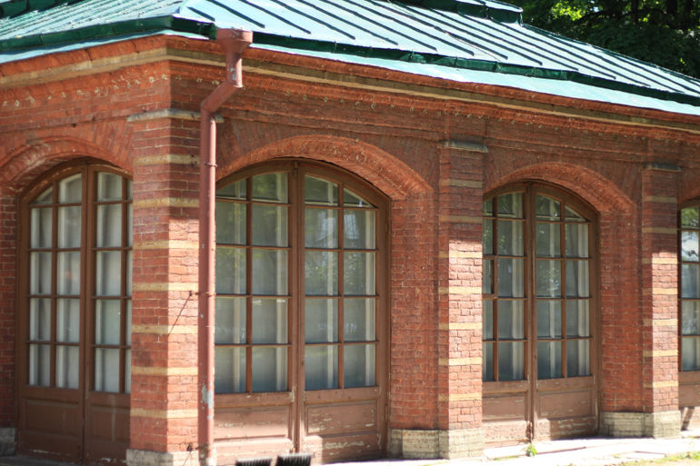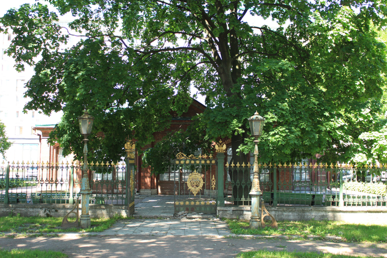 (Первоначальный дворец Петра I или Красные хоромы). 1703 г., построен неизвестными строителями-плотниками из соснового леса по типу шведского деревянного дома и раскрашен под кирпич. Первое жилое здание и единственное сохранившееся деревянное строение Санкт-Петербурга.