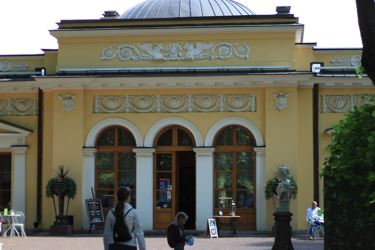 Расположенный неподалеку Кофейный домик был возведен Карло Росси на месте старого грота петровской эпохи. Сейчас в этом здании разместились сувенирный магазин и кафе.