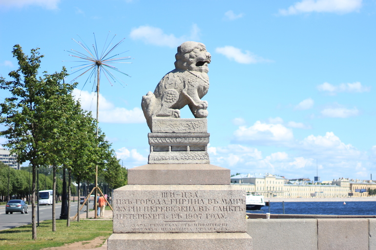 Стоя лицом к крепости, и поворачиваясь по часовой стрелке мы увидим совершенно невероятное для питерской архитектуры сооружение - самую северную в мире мечеть с голубым куполом и двумя минаретами "а-ля" "Гур-Эмир", далее - ближе к Неве - "первый питерский кондоминиум" - Дом политкаторжан -построенный в 1933г. для тех, кого стали расстреливать в 1937-м, далее, на набережной, у спуска к воде (это место - первая пристань в городе) - мифические фигуры Ши-Цза (некий гибрид льва и лягушки - еще пара Ши-цза - в крошечном китайском саду на Литейном пр.),