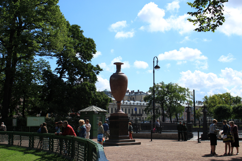 В южном конце парка находится пруд, где действительно плавают лебеди. Возле выхода из сада стоит огромная порфировая ваза, подаренная Николаю I шведским королем в 1839 г.