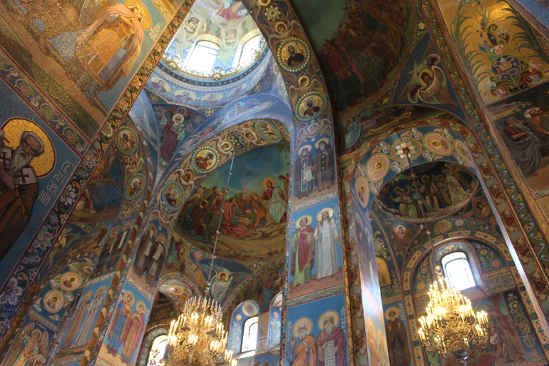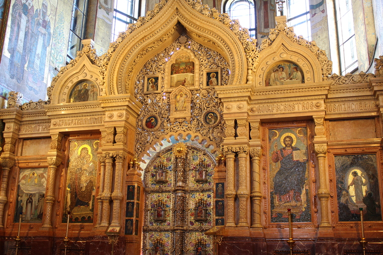 Во-вторых, отделка Спаса на Крови включала богатейшую коллекцию самоцветов, специальной ювелирной эмали, полудрагоценных камней и т.д. В создании внутреннего убранства самое активное участие принимаи мастера известнейших Екатеринбургской, Колыванской и Петергофской гранильных фабрик. Из общей строительной сметы собора (первоначальные 3,6 млн. и дополнительный 1 млн. рублей.) более 2 млн. рублей было истрачено только на работы по его декорированию.