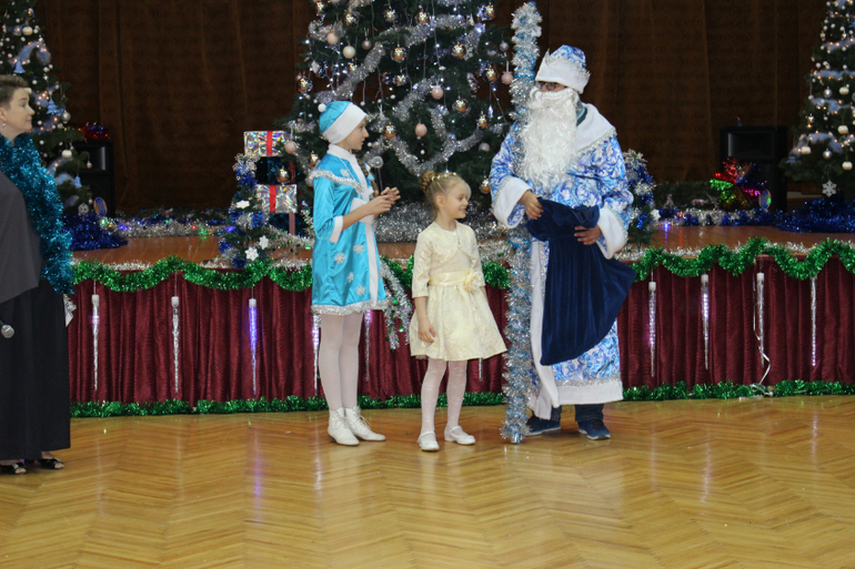 Это окончание вечера - Дед Мороз раздает подарки.