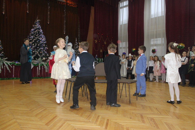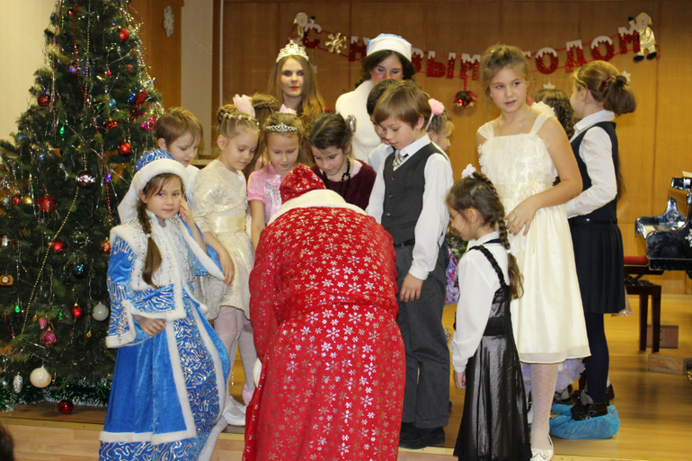Кроме непосредственно исполнения первоклашками своих произведений была небольшая инсценировка. Классика: Дед Мороз, Снегурочка, Баба Яга.