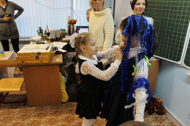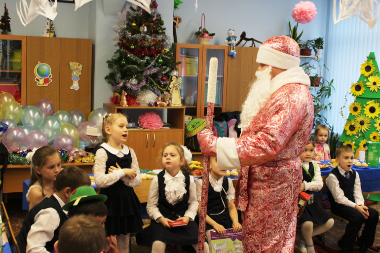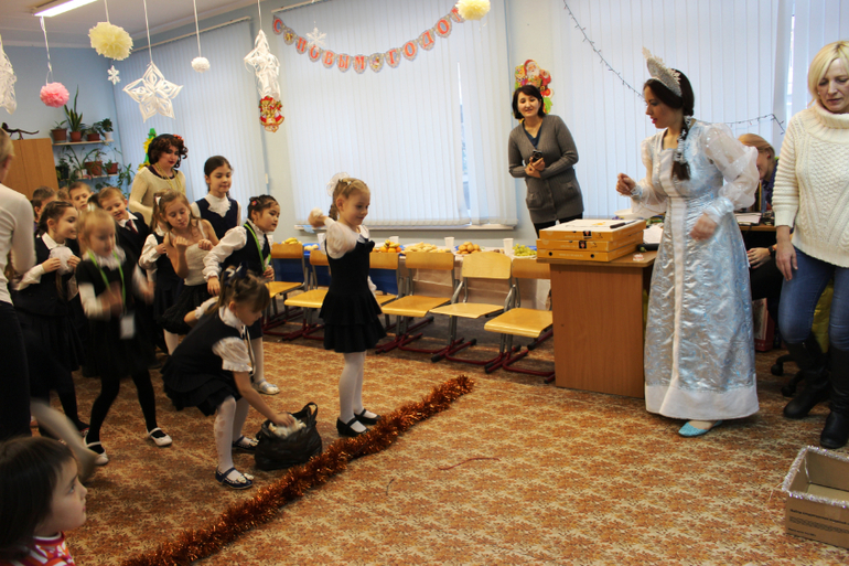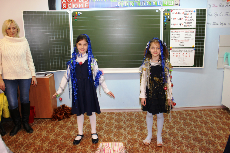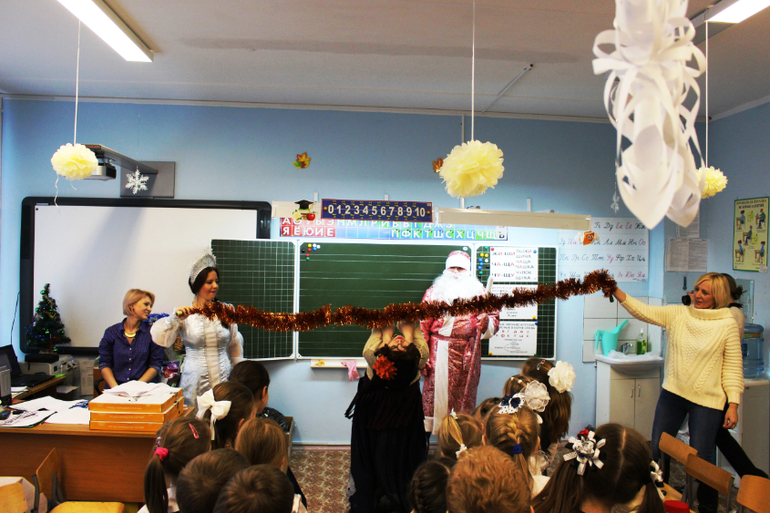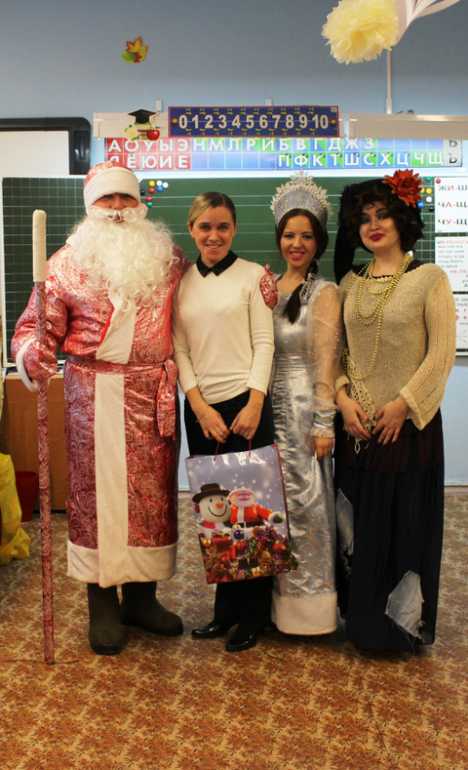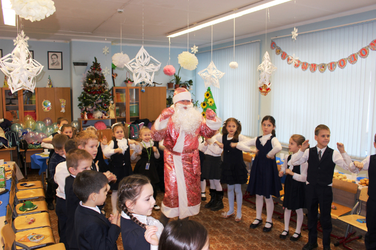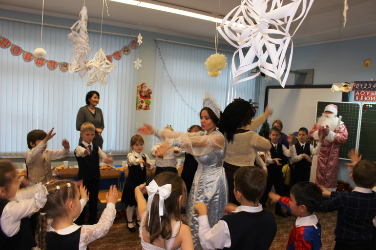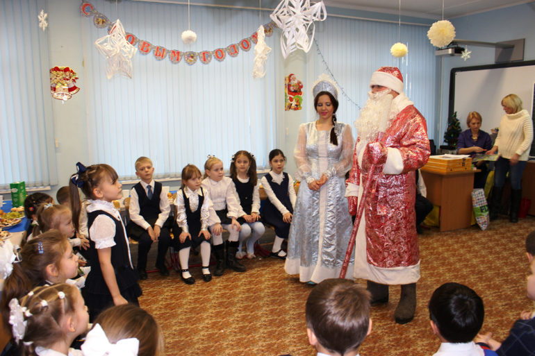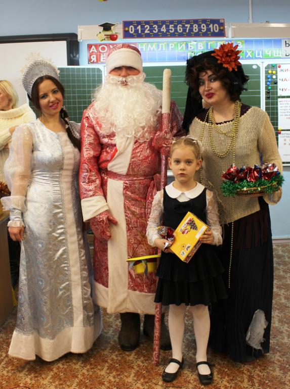 Сразу скажу, что огонек получился просто замечательный! Слава Богу, что у нас есть такие замечательные родители одноклассников! В общем-то, в основном праздник был устроен силами одной семьи - мама написала сценарий, сестра и ее подруга сыграли Снегурочку и Бабу-Ягу. Деда Мороза сыграл папа одноклассника. Костюмы Снегурочки и Деда мороза дала мама другой одноклассницы.