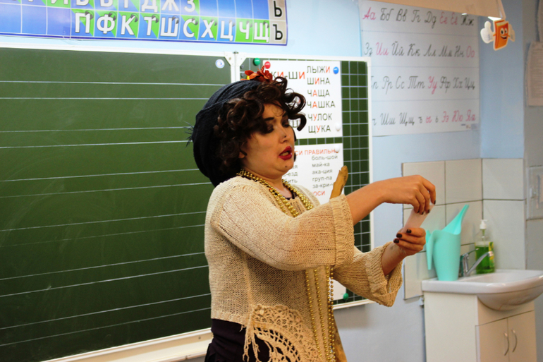 Пока наши артисты готовятся, детей заняли "репетицией стихов".