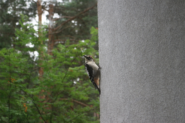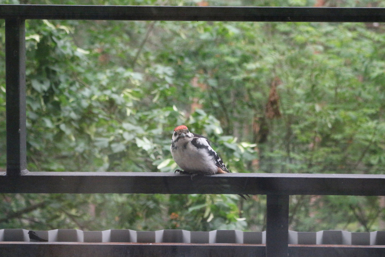 А в самом пансионате у нас был свой зоопарк)) Еще в прошлом году у нас такой случай был. Утром проснулась от того, что на балкон прилетели три вороны. Две сидят на перилах, а третья вышагивает по подоконнику снаружи и стучит клювом в окно)) Ну, мы решили, что их прикормили здесь. Стали выкладывать хлеб на подоконник. Вороны больше не прилетали. Зато стали прилетать дятлы)) Оказалось, что это очень шубутные и веселые птицы, как сороки)) В этом году к нам прилетали папа с сыном))