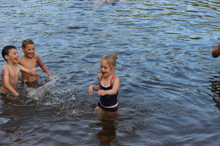 Ездили на упомянутое уже озеро Омчино. В первый заезд добирались окольными путями через лес - 7 км туда, 7 обратно, 1,5 часа делов. Потом нашли короткую дорогу - 3 км, 20 минут и там) Очень чистая вода. У человека, зашедшего по грудь, очень хорошо видны ступни))