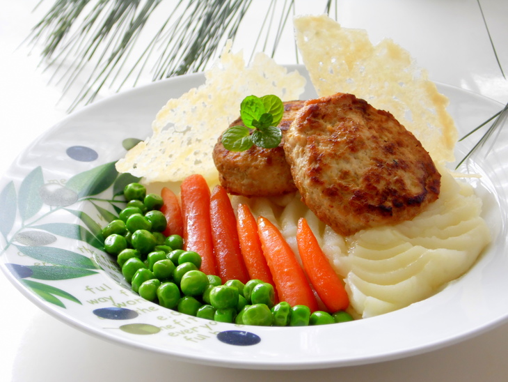 2. Тщательно вымешать фарш, сформировать куриные котлеты . Обжарить котлеты на небольшом количестве растительного масла.