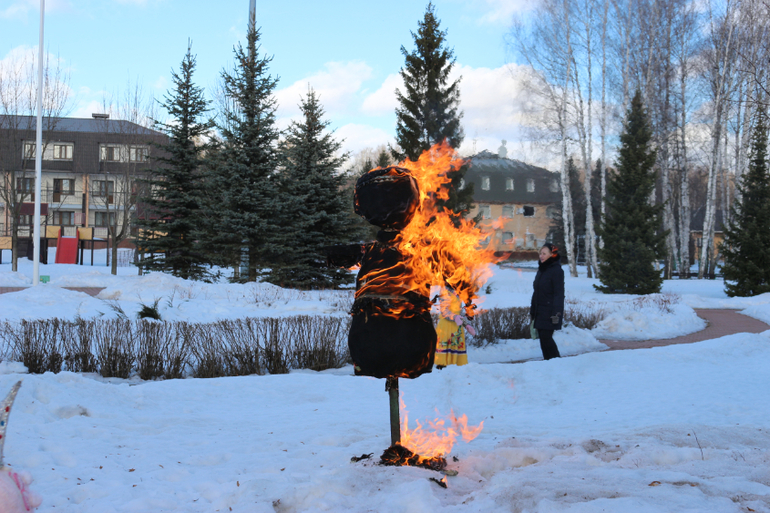 Жалко, до сжигания не сфоткали Масленицу, такая красивая была, жалко жечь было. Мы даже хотели ее стащить потихоньку, чтобы спасти)